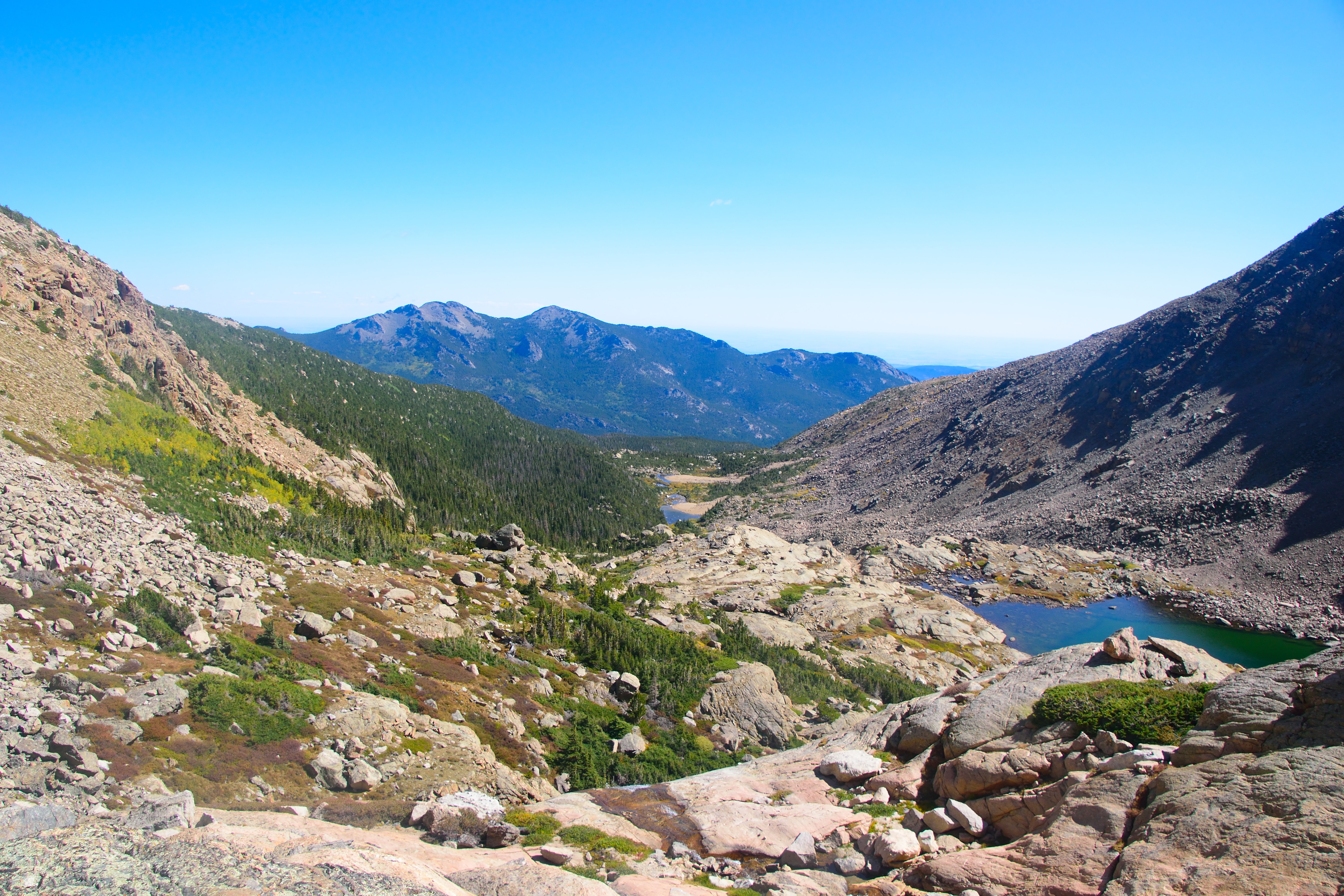 Chasm Lake RMNP Hike Information & Review Published October 31, 2019 at 6000 × 4000 in Chasm Lake Rocky Mountain National Park Hike Guide ← Previous / Next → Looking down towards the hike start and two smaller lakes. Chasm Lake RMNP Hike Information & Review